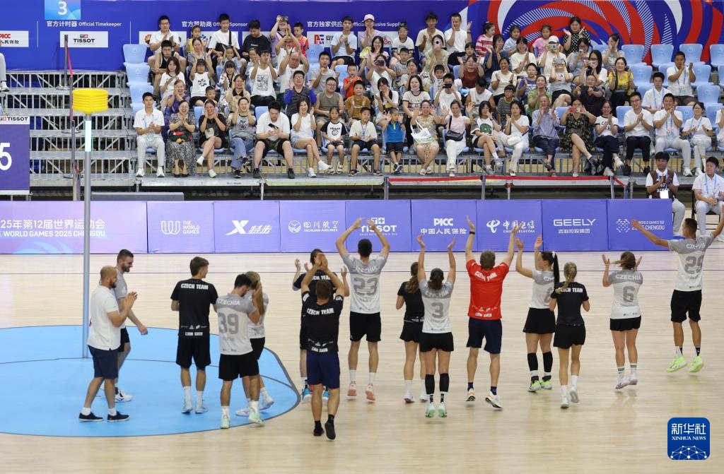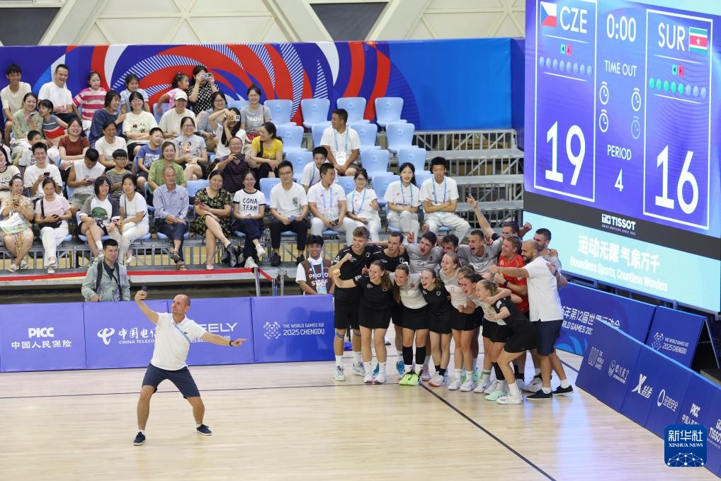 當日,在2025年成都世運會荷球混合團體賽預賽B組比賽中,捷克隊戰勝蘇里南隊。