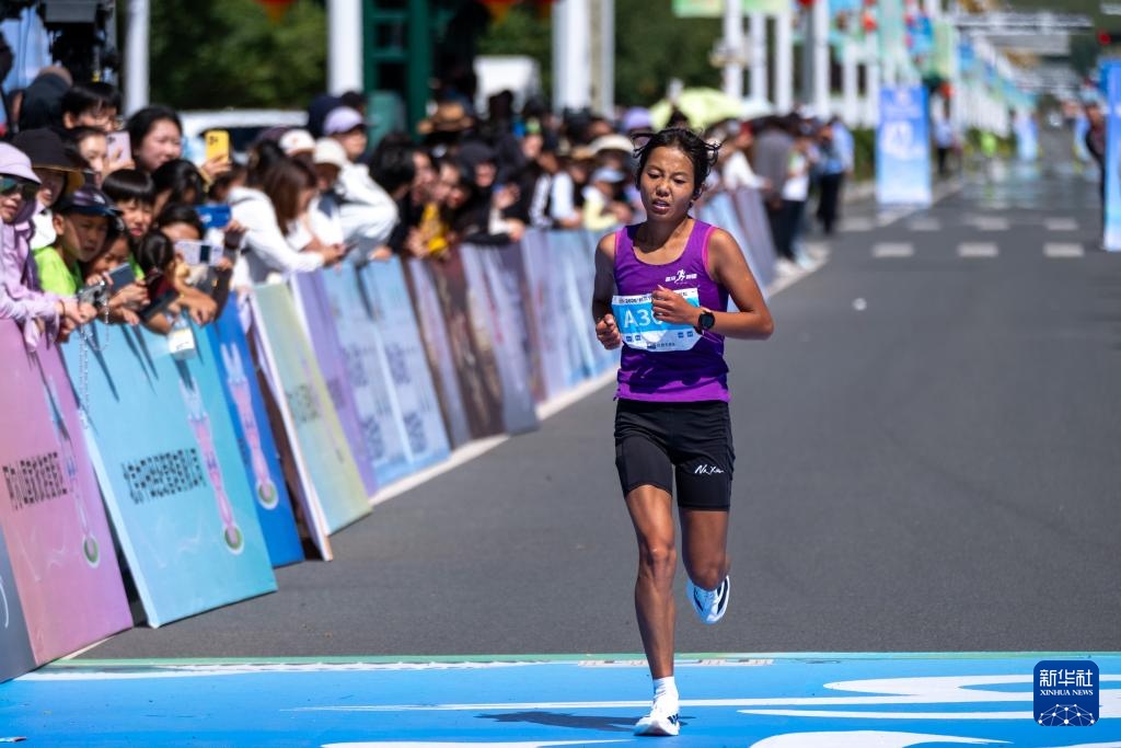 8月10日,埃塞俄比亞選手古塔在比賽中撞線。她以2小時43分00秒的成績獲得女子全程馬拉松冠軍。