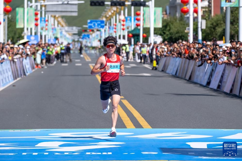 8月10日,中國選手康洋洋在比賽中。他以2小時22分45秒的成績獲得男子全程馬拉松亞軍。