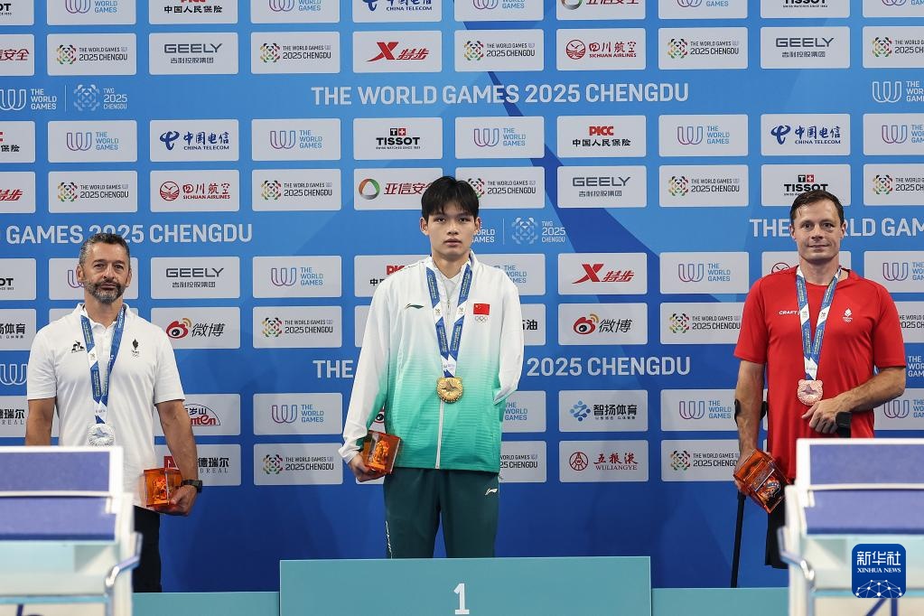 當日,在2025年成都世運會自由潛水男子動態無蹼FFS1-FFS2決賽中,中國選手龍鄧喜獲得冠軍。