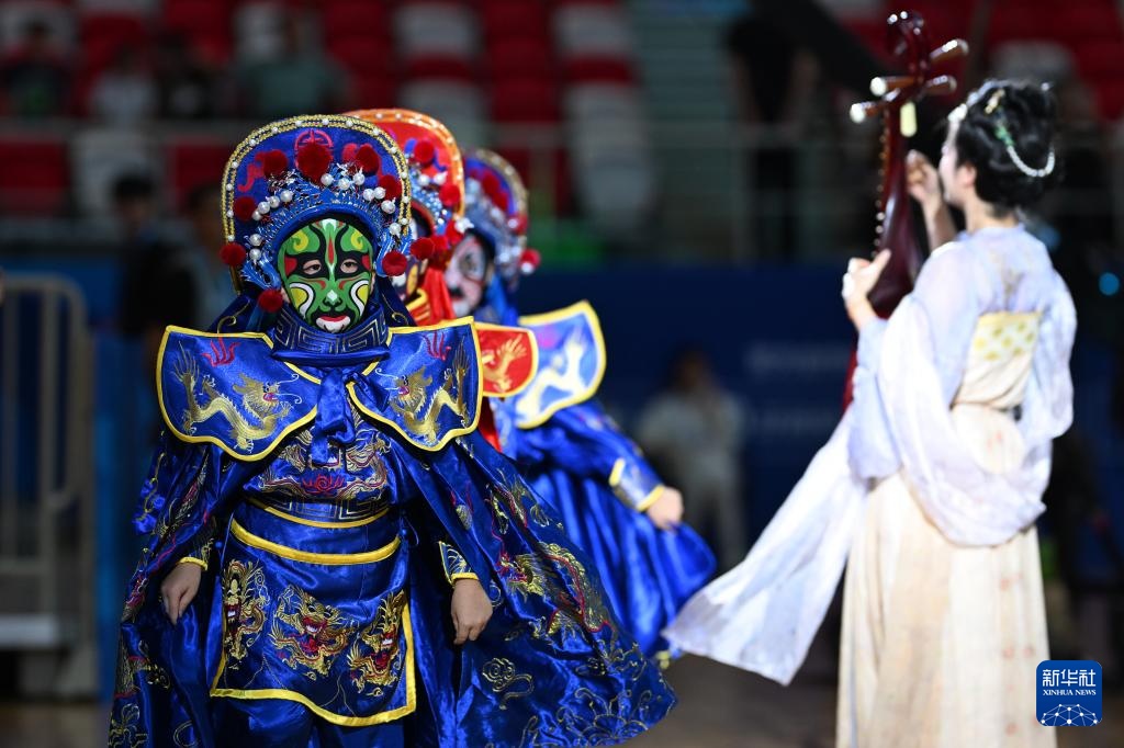 8月10日,演員在賽前表演。
