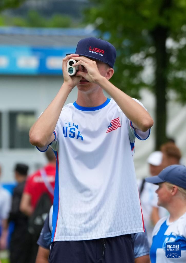 8月10日,美國隊選手布爾在比賽中使用測距儀測距。