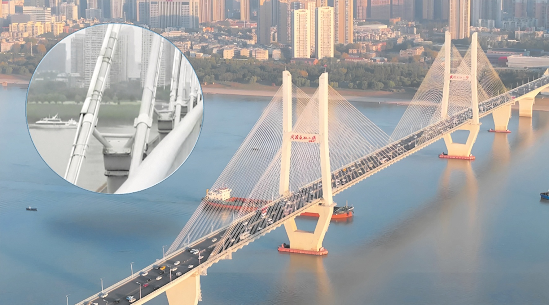 汽車減震器、運(yùn)動(dòng)鞋氣墊、洗衣機(jī)防震墊……這些日常生活中的“緩沖神器”,運(yùn)用了“以柔克剛”的工程智慧。然而,對(duì)于橫跨江河山川的大型斜拉橋,其如同“琴弦”般敏感的斜拉索面臨的挑戰(zhàn)遠(yuǎn)非如此簡(jiǎn)單。地震、強(qiáng)風(fēng)、密集車流引發(fā)的劇烈震動(dòng),都可能導(dǎo)致斜拉索疲勞甚至斷裂,危及橋梁安全。此時(shí),阻尼器便化身為“橋梁的防抖云臺(tái)”,通過消耗振動(dòng)能量守護(hù)安全。橋梁阻尼器需應(yīng)對(duì)極端環(huán)境和長(zhǎng)期考驗(yàn),其復(fù)雜性和耗能能力遠(yuǎn)超日常器物。