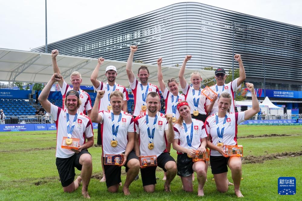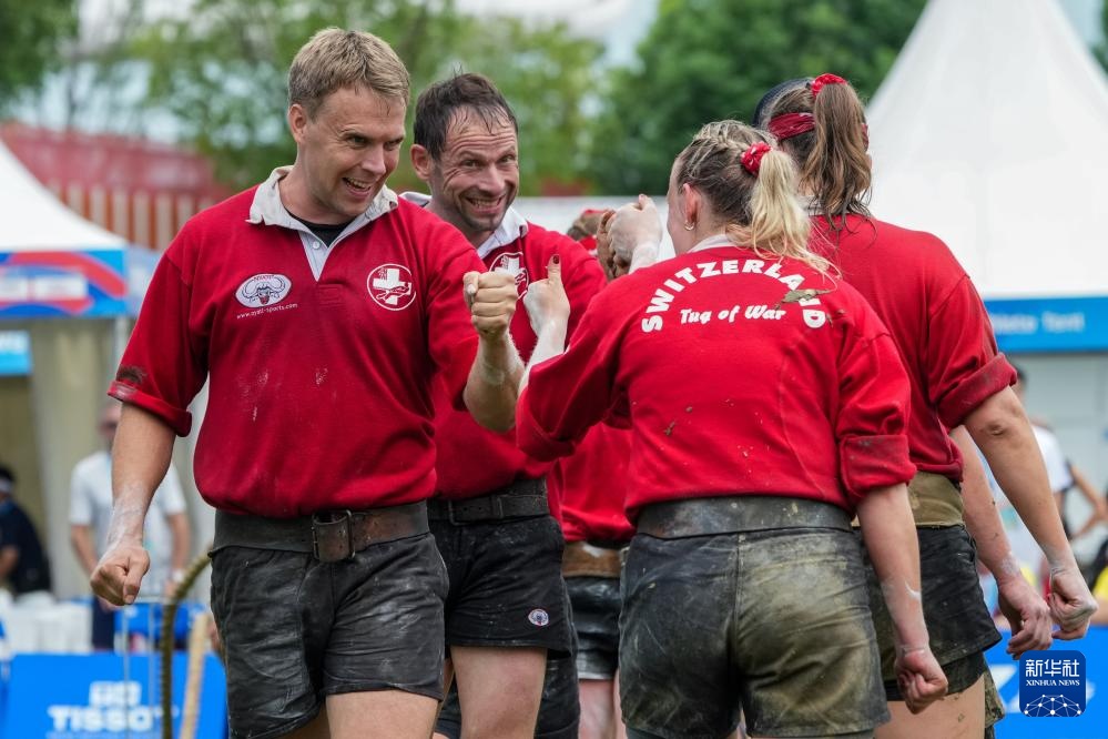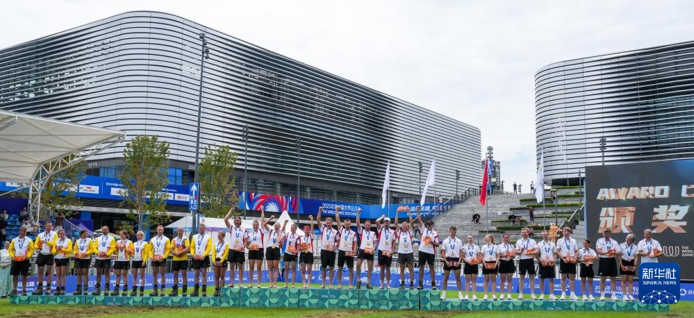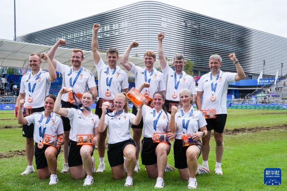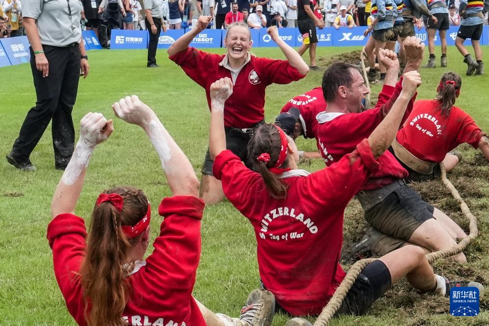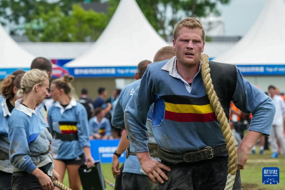 當日,2025年成都世運會混合室外拔河580公斤級比賽在東安湖體育公園中央廣場舉行。