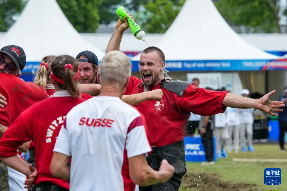 8月11日,瑞士隊隊員在賽后慶祝。最終,瑞士隊以3比0戰勝比利時隊,獲得冠軍。