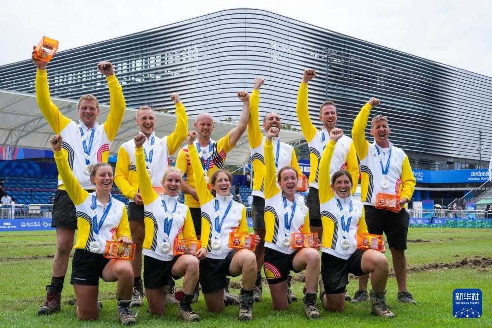 8月11日,比利時隊隊員(上)在比賽中。最終,他們獲得亞軍。