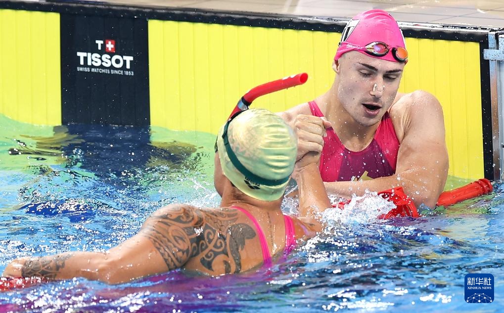 8月11日,德國隊選手馬克斯(右)在比賽后。最終,德國隊奪冠。