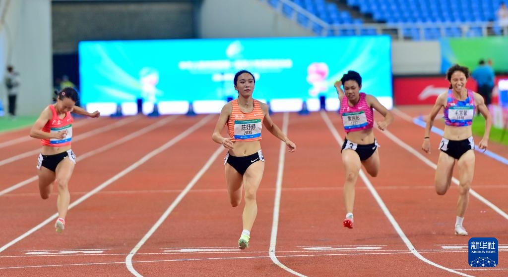 8月11日,浙江隊選手陳妤頡(左二)在比賽中沖線。她獲得冠軍。