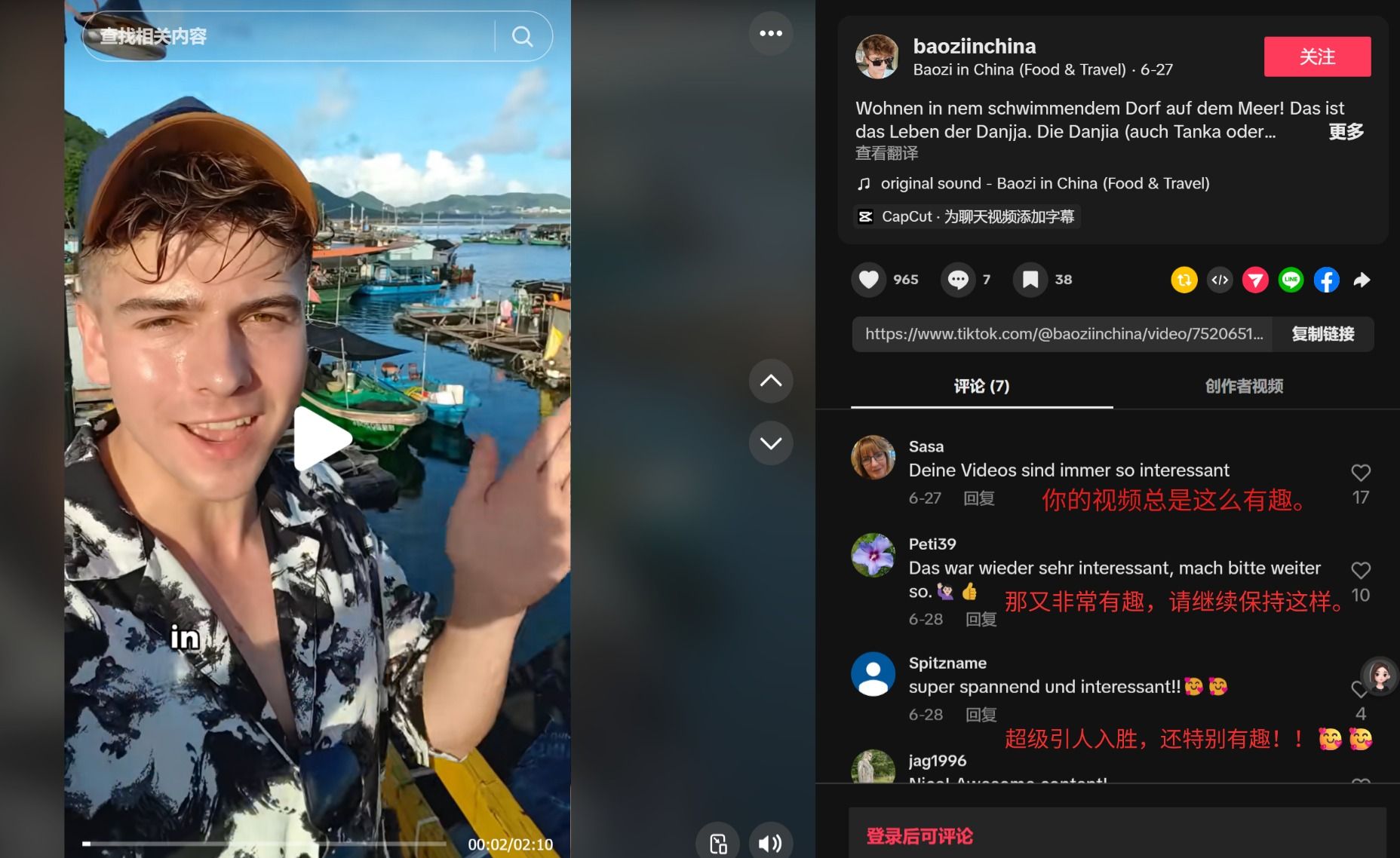 參與活動的19位外國博主運用短視頻、長視頻、圖文等多種創作形式,全方位呈現海南美景美食。其中,日本博主世蘭在 TikTok 發布8條視頻,以活潑手勢舞展示??诶习植璋褪?、文昌石頭公園、分界洲島、檳榔谷等景點;德國博主Robert Adolf在TikTok上分享的海南疍家文化和疍家魚排上的糟粕醋海鮮火鍋、海鮮粥,單條視頻播放量達9.3萬,965次贊,很多粉絲表示“這是個有趣的地方”。