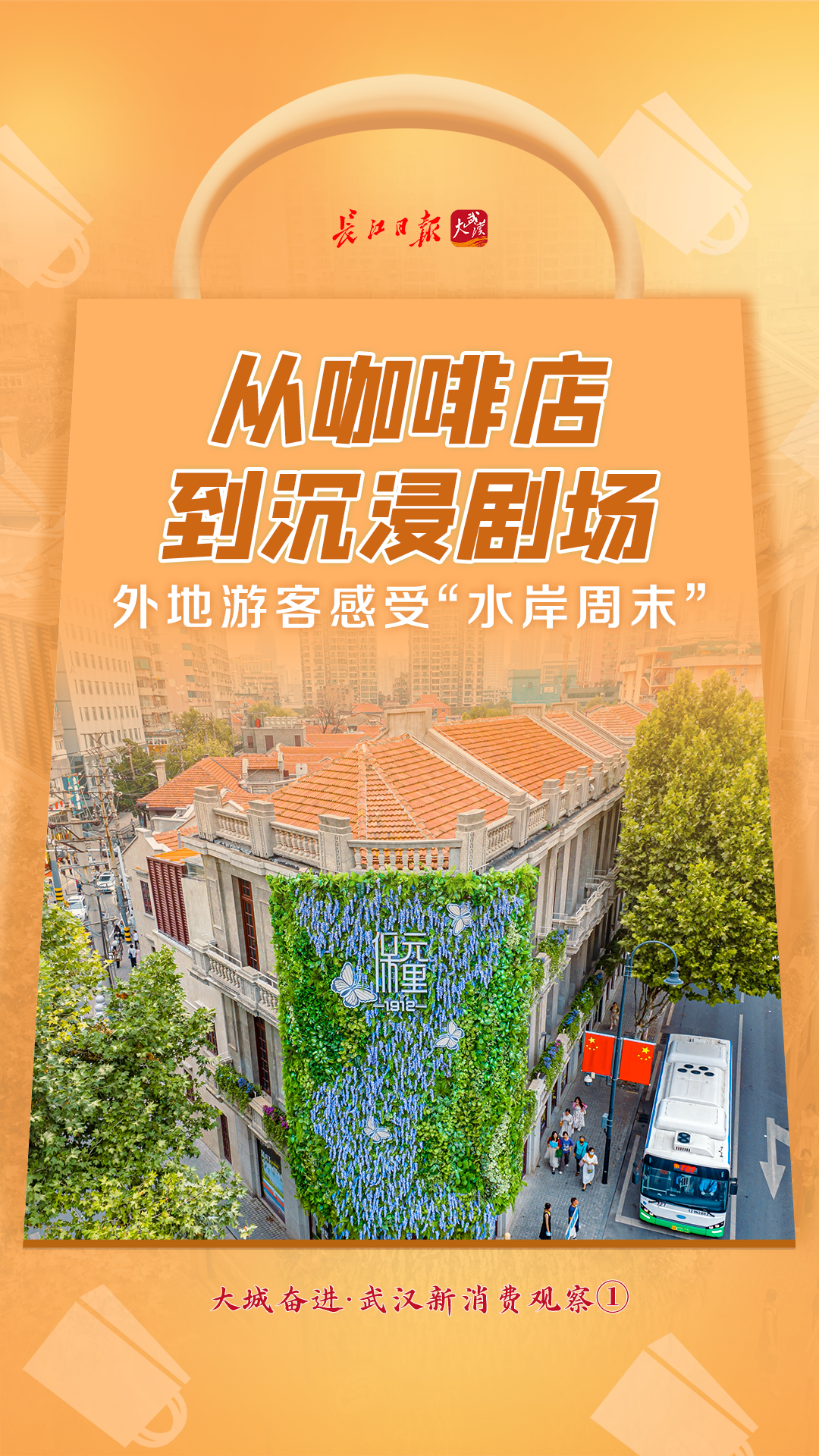 江蘇淮安的江陌在一家咖啡店點了一杯拿鐵,杯中的拉花是楓葉形狀,葉脈里還藏著細密的水波紋。“武漢的咖啡都帶著江水的味道。”她在朋友圈寫道。