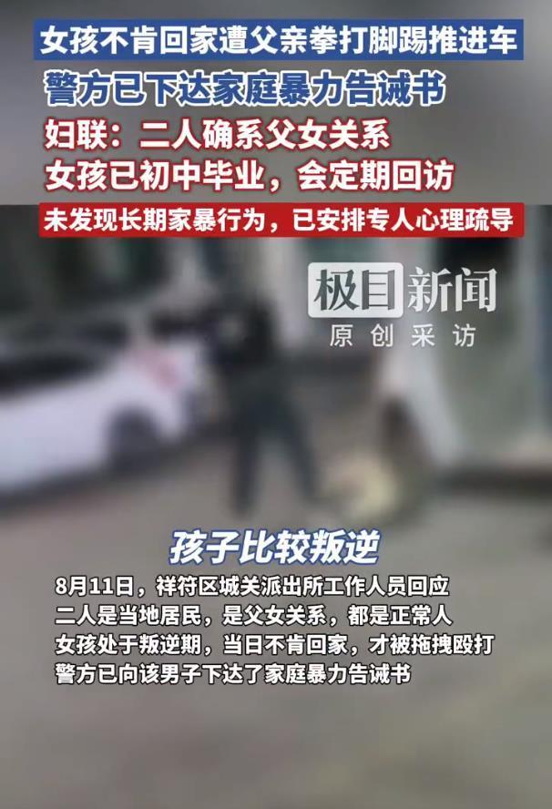 8月11日,祥符區(qū)城關派出所工作人員回應,視頻中的這一幕發(fā)生在數日前。經初步了解,二人是當地居民,是父女關系。女孩處于叛逆期,當日不肯回家,才被拖拽毆打。警方已向該男子下達了家庭暴力告誡書。至于男子是否會受到處罰?該工作人員稱,目前女孩沒提什么要求,“清官難斷家務事”。