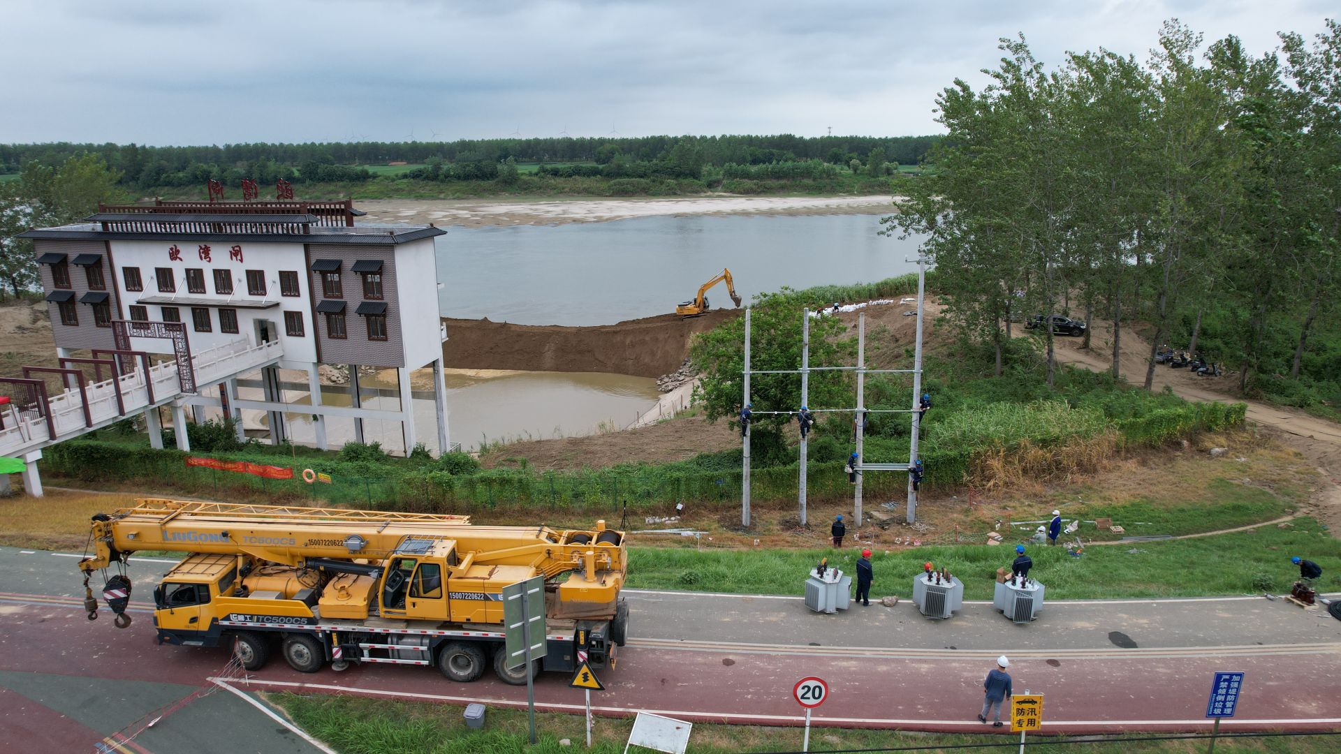 8月7日,國網仙桃市供電公司工作人員已趕赴漢江河堤歐灣閘附近,分成兩組并行開工。隨著施工人員手腳麻利地登上電桿,開始安裝臺架;吊裝車已起吊著變壓器同步吊裝到位。工作人員有條不紊地連接導線、電纜;安裝低壓柜,裝上分接開關和互感器。現場嚴陣以待的帶電作業人員,登上絕緣斗臂車,動作嫻熟地迅速接火,以保證能盡早驗收送電。