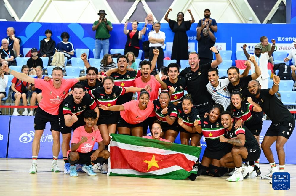 當日,在2025年成都世運會荷球混合團體賽第五名爭奪賽中,蘇里南隊戰勝德國隊。