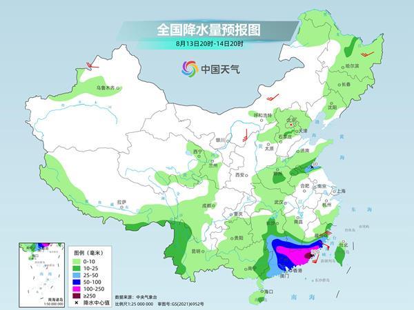 13日至15日,臺灣島、福建南部、廣東、廣西、江西南部、湖南南部、貴州有大到暴雨,部分地區大暴雨,局地特大暴雨,部分地區累計降水量100至250毫米,局地300至400毫米。