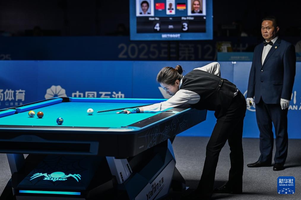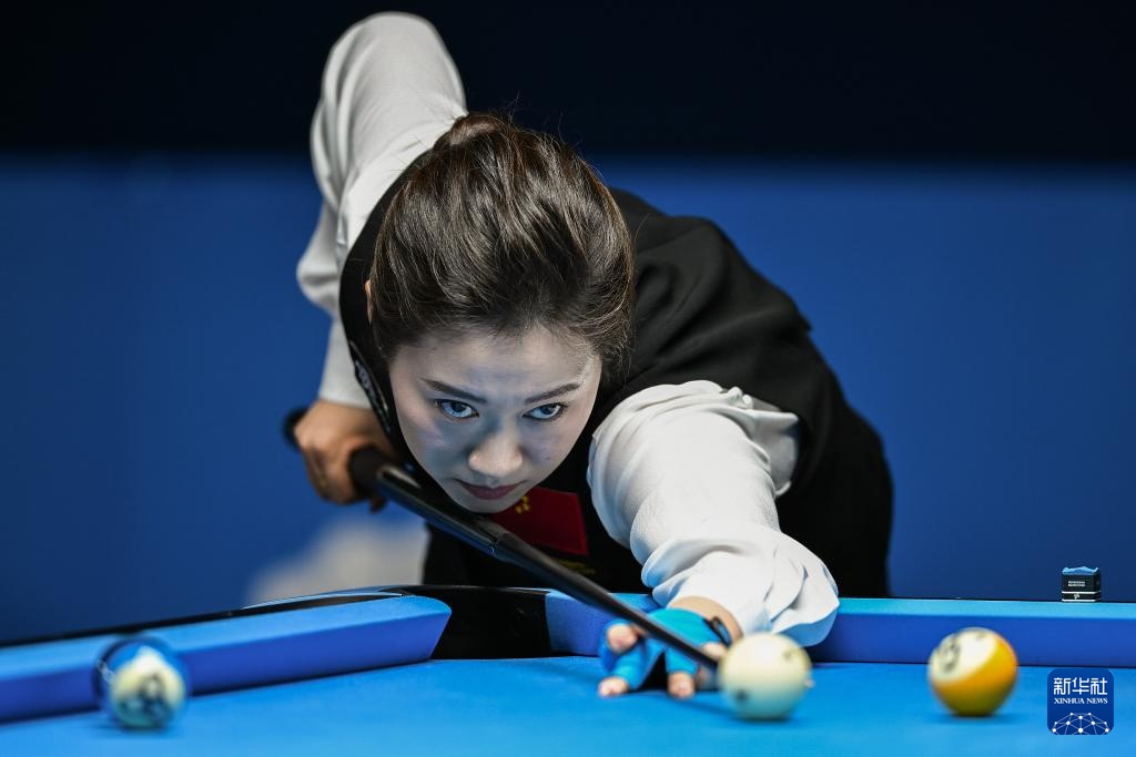當日,在2025年成都世運會女子花式臺球四分之一決賽中,中國選手韓雨戰勝德國選手菲勒,成功晉級。