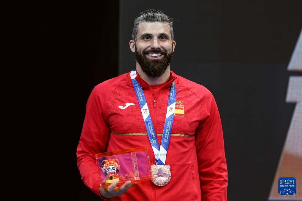8月12日,季軍西班牙選手安德烈在領獎臺上。