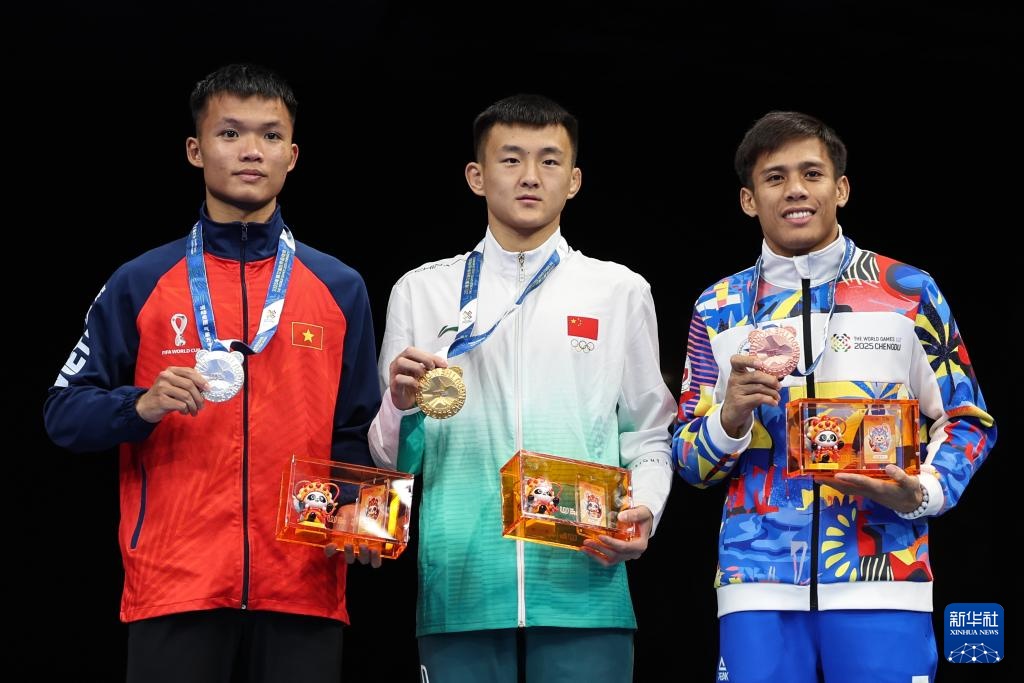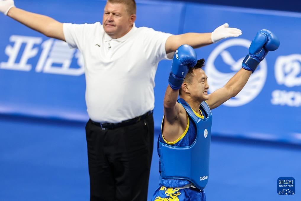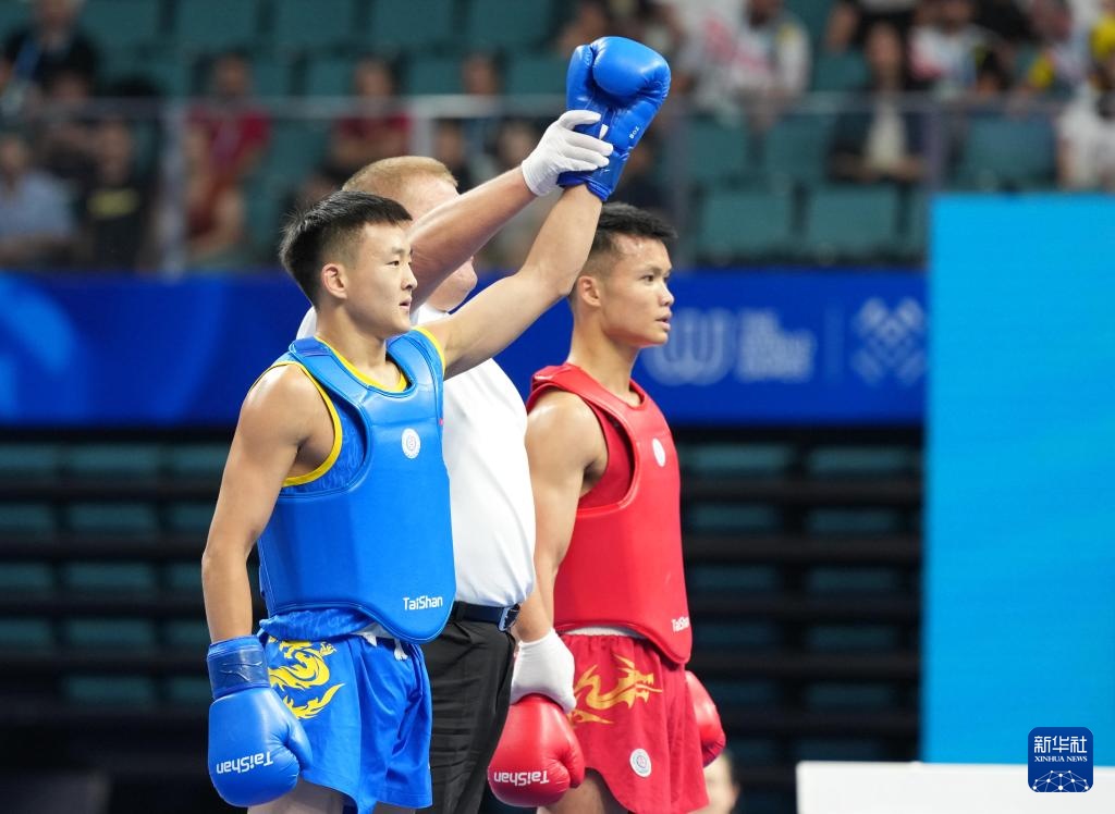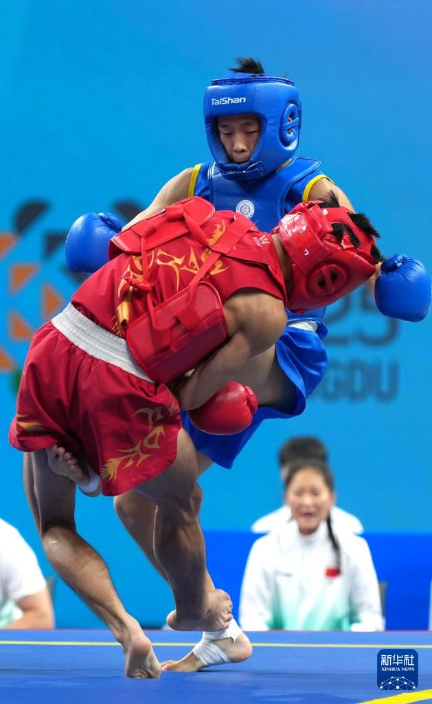 當(dāng)日,在2025年成都世運(yùn)會(huì)武術(shù)男子散打56公斤金牌賽中,中國(guó)選手唐思碩戰(zhàn)勝越南選手杜輝煌(音),奪得冠軍。