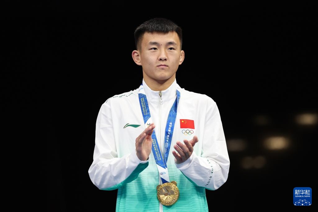 8月12日,冠軍中國(guó)選手唐思碩在頒獎(jiǎng)儀式上。