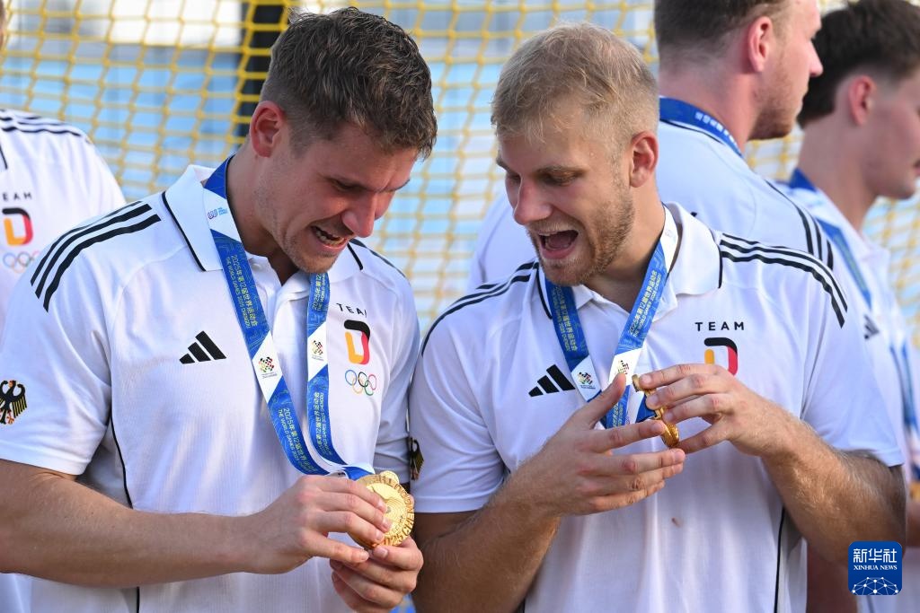 8月12日,冠軍德國(guó)隊(duì)在頒獎(jiǎng)儀式上。