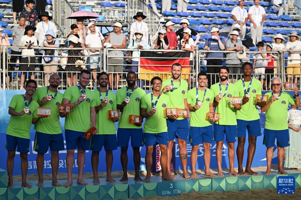 當(dāng)日,2025年成都世運(yùn)會(huì)男子沙灘手球頒獎(jiǎng)儀式舉行。
