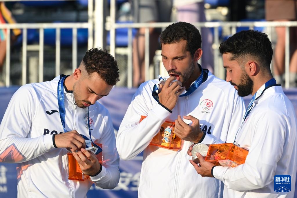 8月12日,亞軍葡萄牙隊(duì)在頒獎(jiǎng)儀式上。
