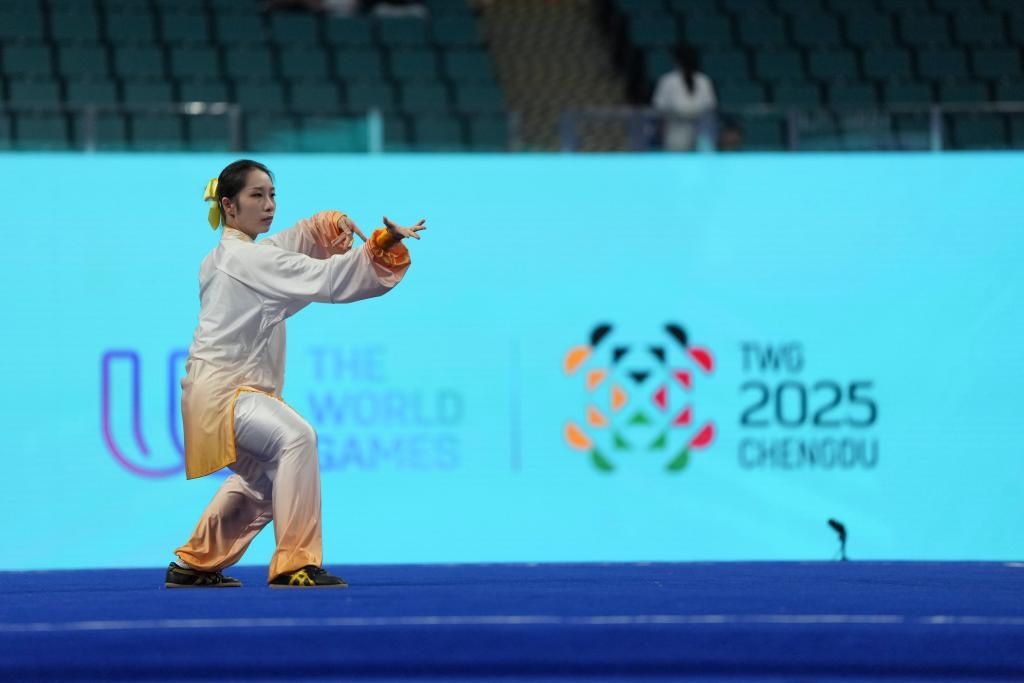 8月8日,中國選手盧卓靈在太極拳比賽中。新華社記者 胥冰潔 攝
