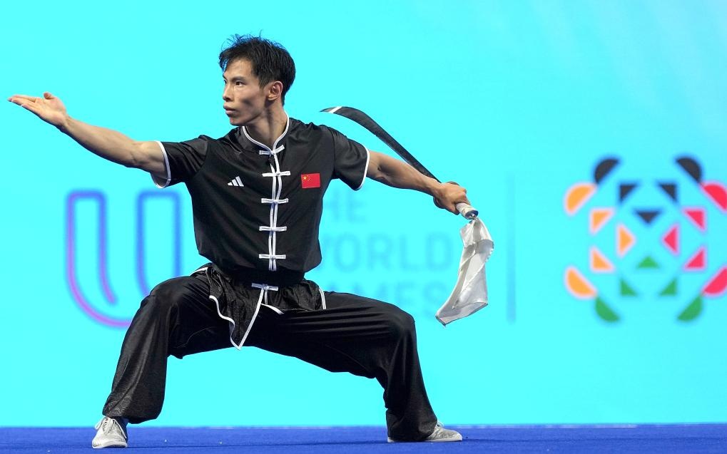8月9日,中國香港選手楊頌熹在太極劍比賽中。最終,他獲得冠軍。新華社記者 徐速繪 攝