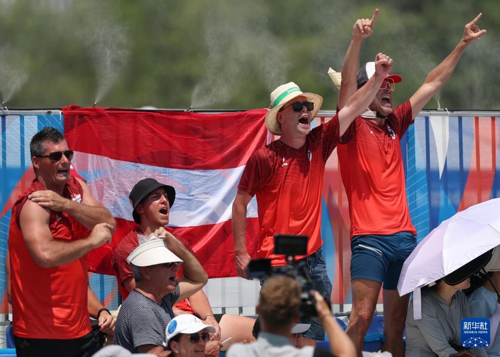 8月13日,場(chǎng)邊的奧地利球迷們?cè)诒荣愔袨榍蜿?duì)加油。