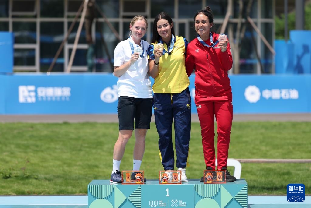當日,在成都舒悅公園舉行的2025年成都世運會速度輪滑女子公路賽(15000米淘汰)的決賽中,哥倫比亞選手加芙列拉獲得冠軍,法國選手勒弗夫爾和墨西哥選手萊特列爾卡塔赫納分別獲得亞軍、季軍。