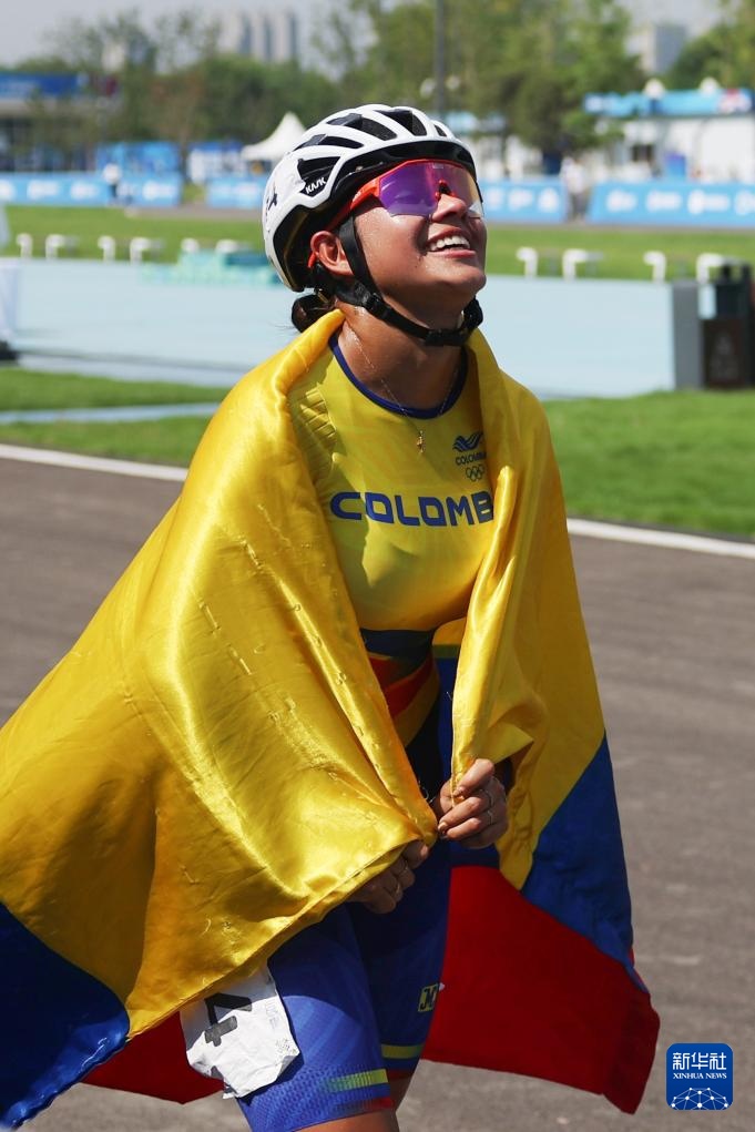 8月13日,獲得冠軍的哥倫比亞選手加芙列拉奪冠后身披國旗繞場慶祝。