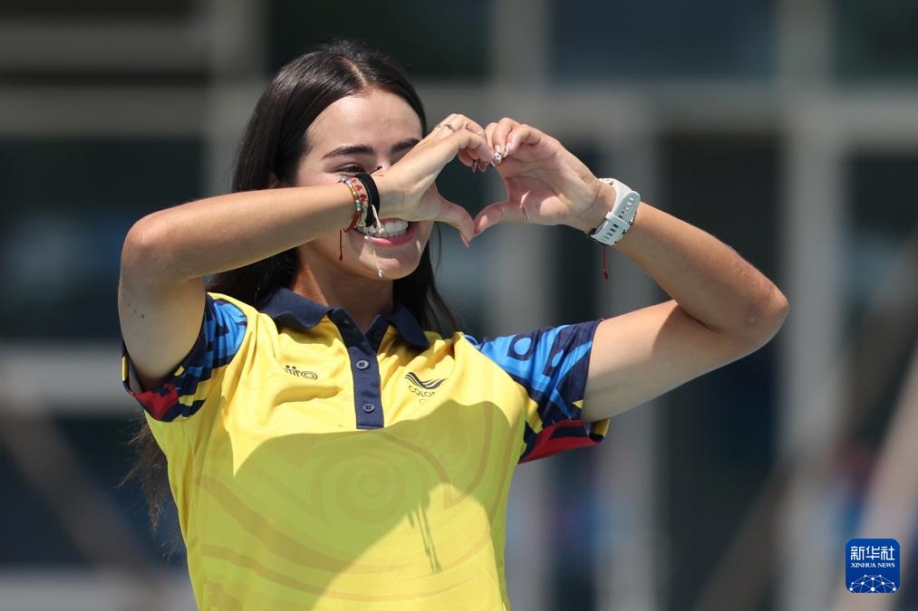 8月13日,獲得冠軍的哥倫比亞選手加芙列拉(左一)在比賽中。
