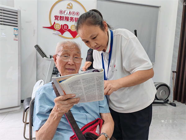 汪薇陪伴老人讀書看報。 通訊員供圖