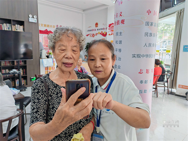 汪薇耐心教老人使用智能手機。 通訊員供圖