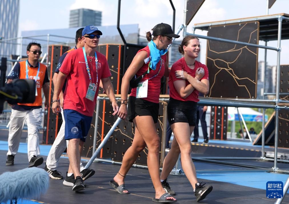 8月13日,捷克選手阿德拉(右一)在比賽中受傷離場。她最終位列第八。