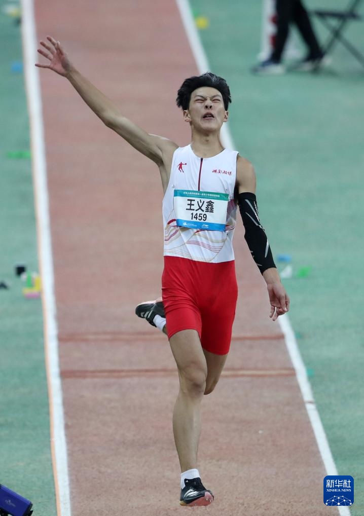 8月13日,湖南隊選手王義鑫在男子跳遠團體決賽中。最終,湖南隊獲得第三名。