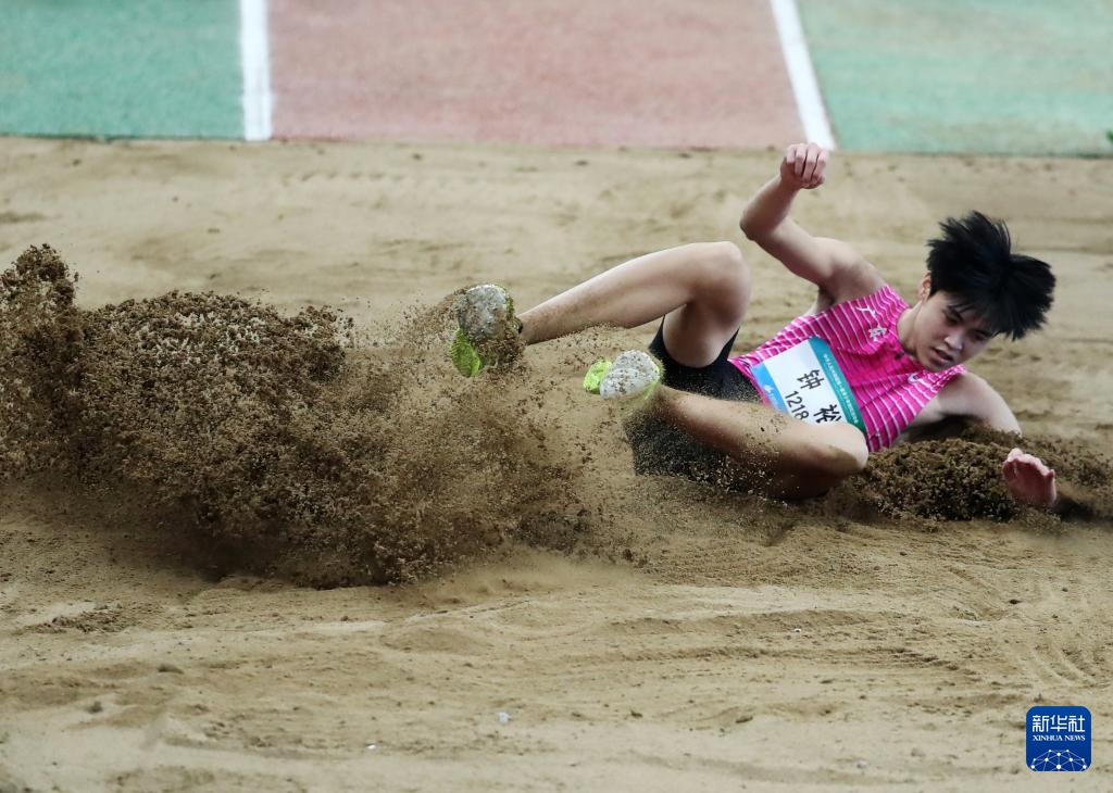 8月13日,廣東隊選手吳貝在男子跳遠團體決賽中。最終,廣東隊獲得第四名。