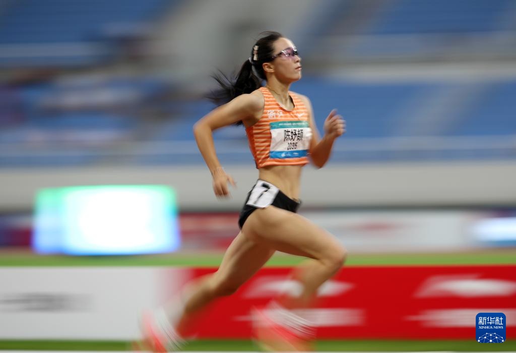 8月13日,浙江隊選手陳妤頡在女子200米預賽中。