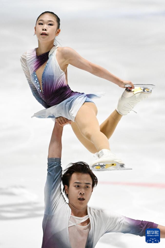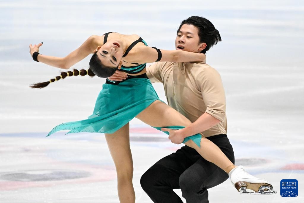 8月13日,肖紫兮/何凌昊(右)在冰舞自由舞比賽中,他們獲得冰上舞蹈第三名。