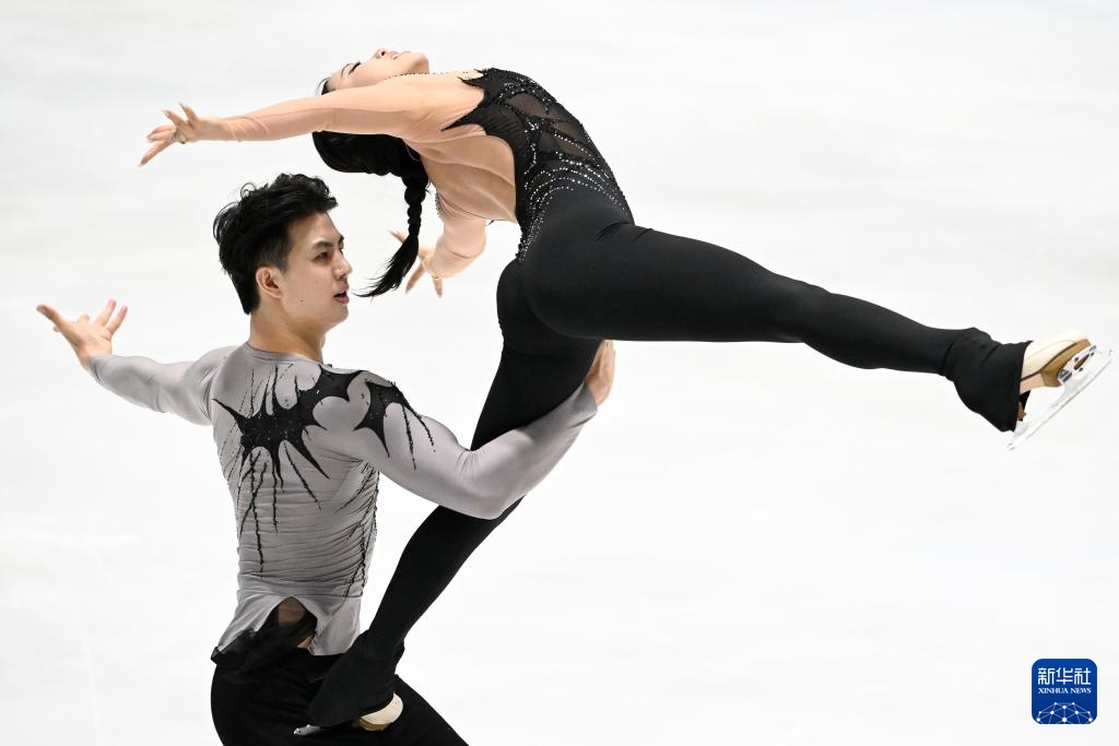 8月13日,張嘉軒(上)/黃一航在雙人滑自由滑比賽中,他們獲得雙人滑第一名。