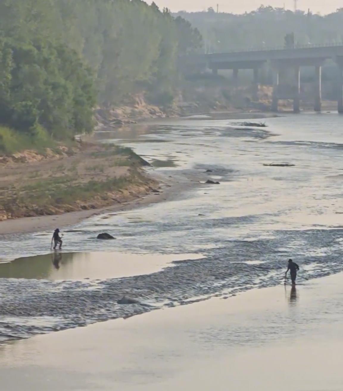 8月14日中午,有網友發布視頻顯示,有多人在涇渭交匯處的灘涂上用金屬探測器尋物。有網友稱,這里是古代行船的交匯口,可能有金銀器和銅鏡、銅錢等物件,此前有人撿到過值錢的寶物。也有網友稱,洪水過后,可能會撿到上游沖下來的值錢物件。