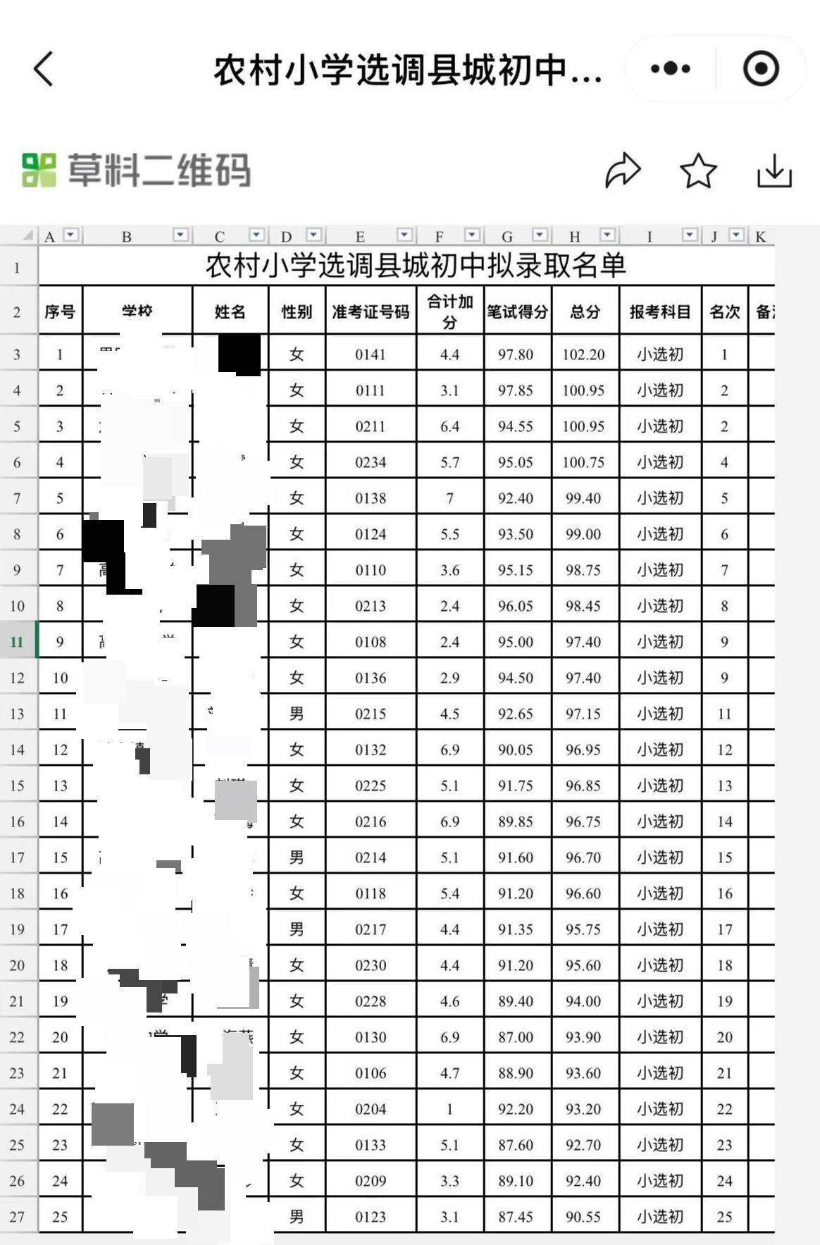 農(nóng)村小學(xué)選調(diào)縣城初中擬錄取名單