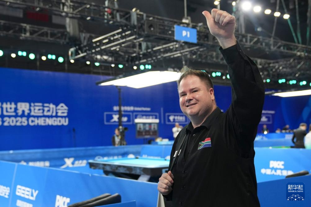 當日,在2025年成都世運會臺球八球混合金牌賽中,中國選手張泰藝戰勝南非選手塞龍,奪得冠軍。