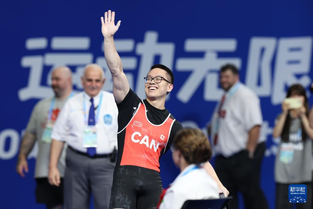 8月14日,加拿大選手克利夫頓在比賽中打破硬舉世界紀錄后慶祝。