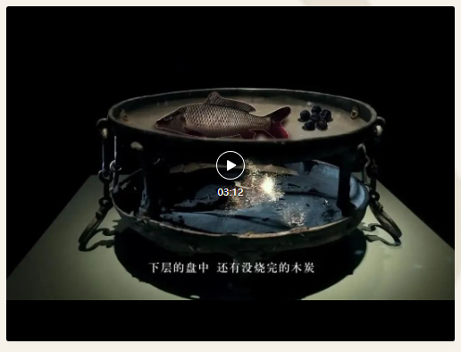 在曾侯乙的墓里,出土了一個銅爐盤,這也是目前發現的年代最早用于煎烤食物的青銅炊具。這個爐盤分為上下兩層:上層的釜里保存著一條完整的鯽魚魚骨,下層的爐盤里有未燒盡的木炭,類似我們今天的燒烤盤。