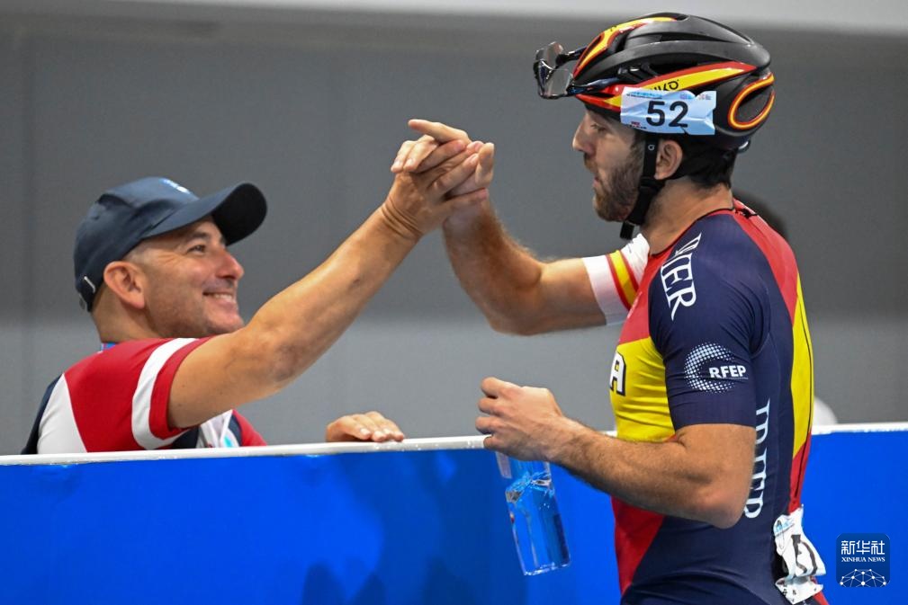 8月14日,西班牙選手古斯曼·比塔爾(右)在比賽后慶祝。