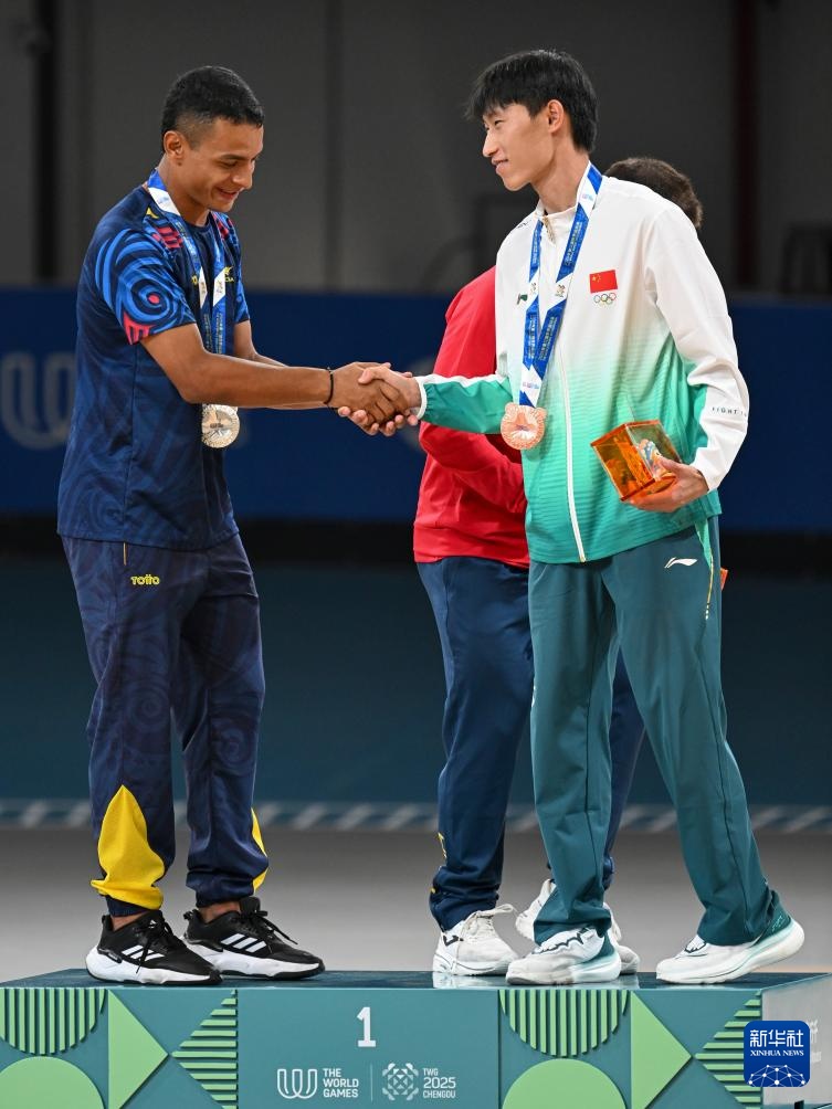 當日,在2025年成都世運會速度輪滑場地賽(500米+D爭先)男子決賽中,西班牙選手古斯曼·比塔爾獲得冠軍,哥倫比亞選手塔斯孔·奧爾古因獲得亞軍,中國選手張振海獲得季軍。