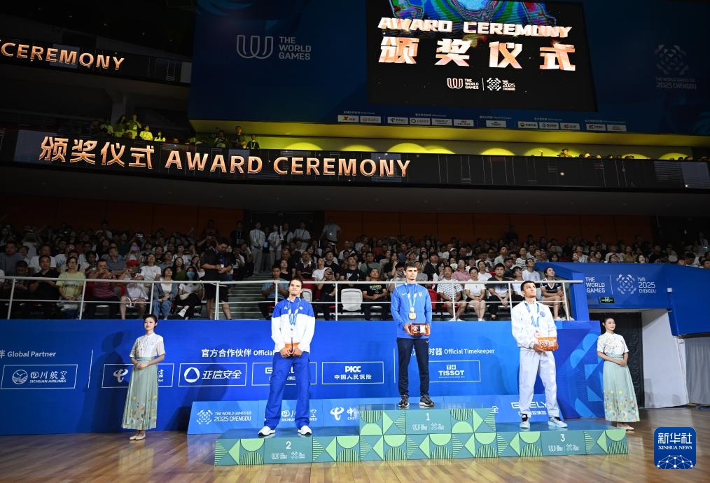 當(dāng)日,2025年成都世運(yùn)會(huì)自由搏擊男子K1 63.5公斤級(jí)頒獎(jiǎng)儀式舉行。