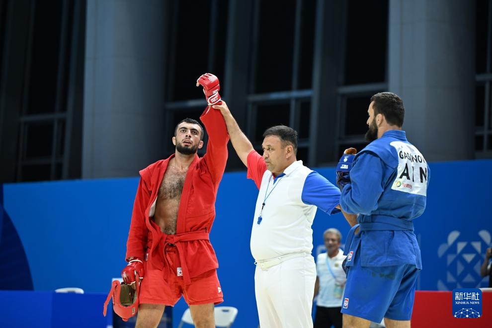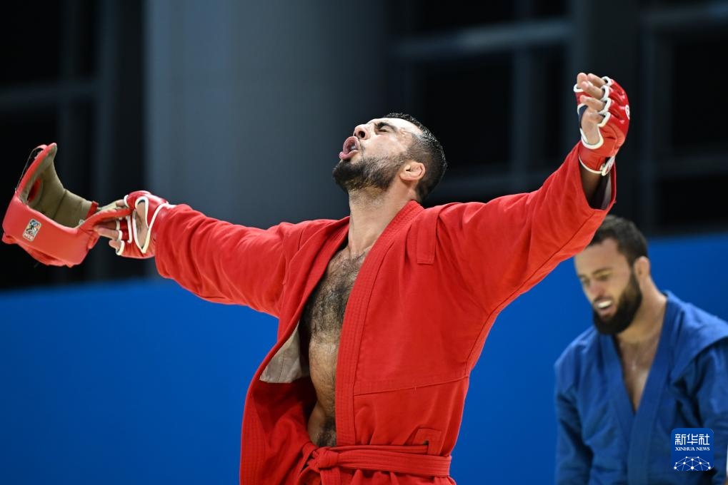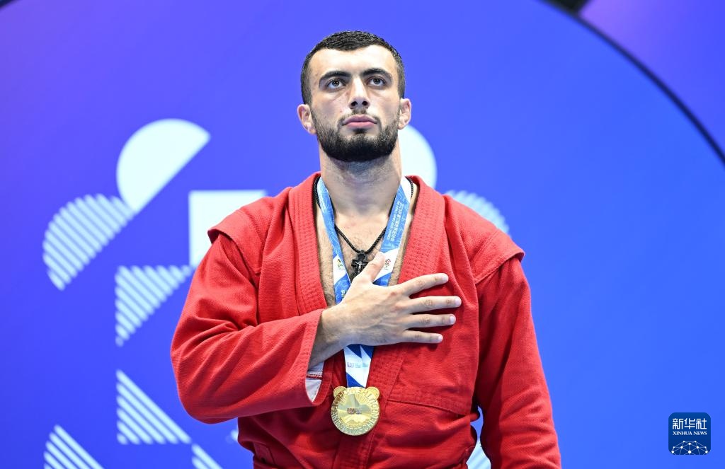 當日,在2025年成都世運會桑搏男子格斗98公斤級金牌賽中,亞美尼亞選手阿瓦涅相獲得冠軍。
