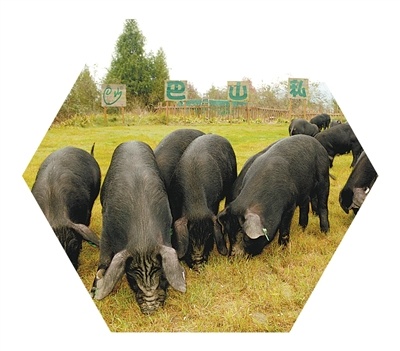 四川省通江縣廣納鎮的青峪黑豬放牧場,一群準備出欄的青峪黑豬正在覓食。本報記者 顧仲陽攝