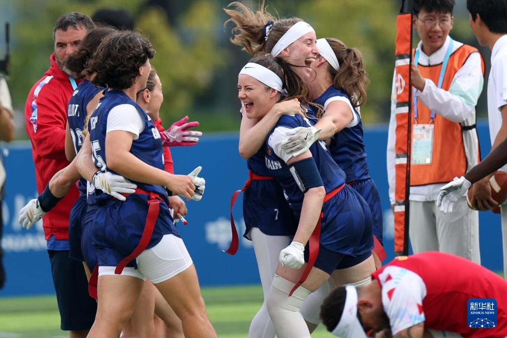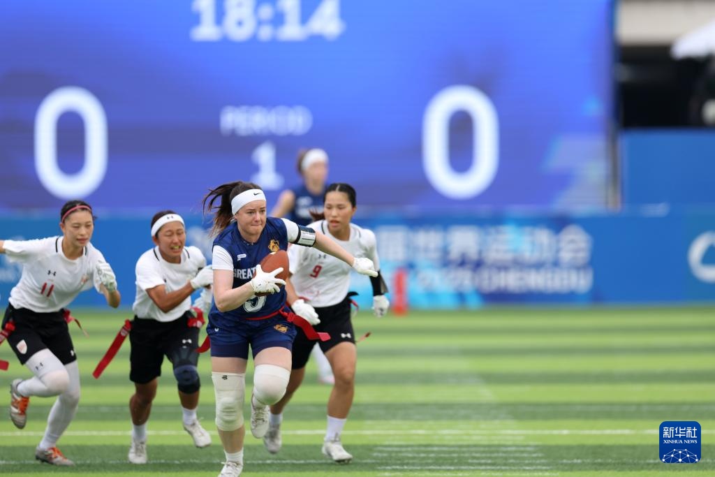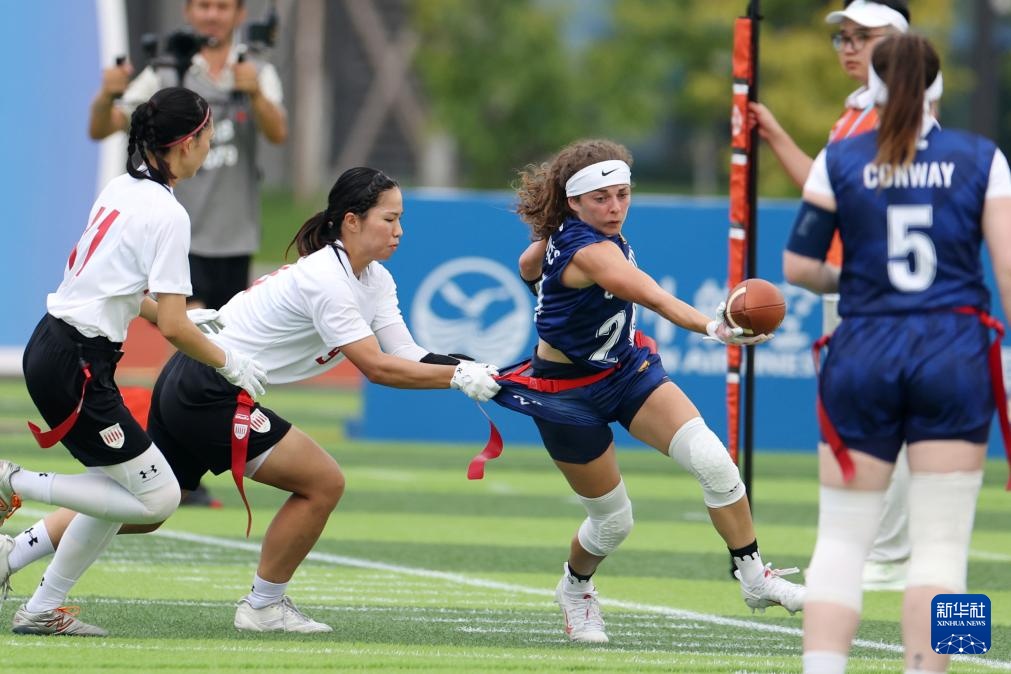當日,在成都七中東部學校田徑場舉行的2025年成都世運會腰旗橄欖球女子B組預賽中,英國隊26比24戰勝日本隊。